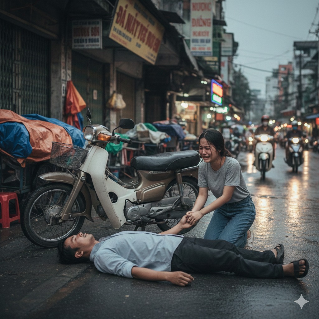 Còn anh… nằm cách đó vài mét, bất động.