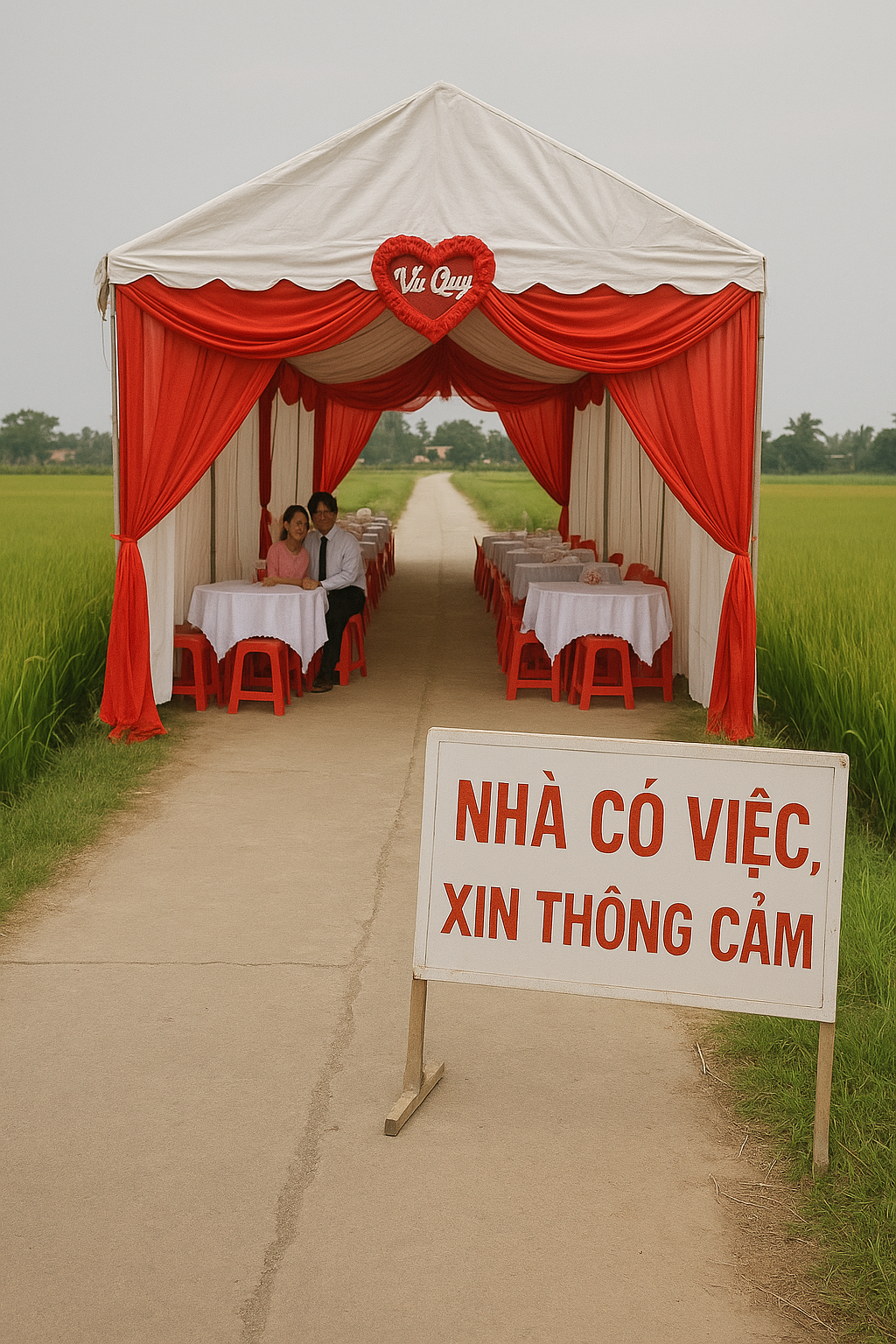 Cách đây một tháng, vợ chồng tôi tổ chức đám cưới cho con trai. Cũng như bao gia đình khác, chúng tôi dựng rạp ngay ngoài ngõ cho tiện việc đi lại và đón khách.